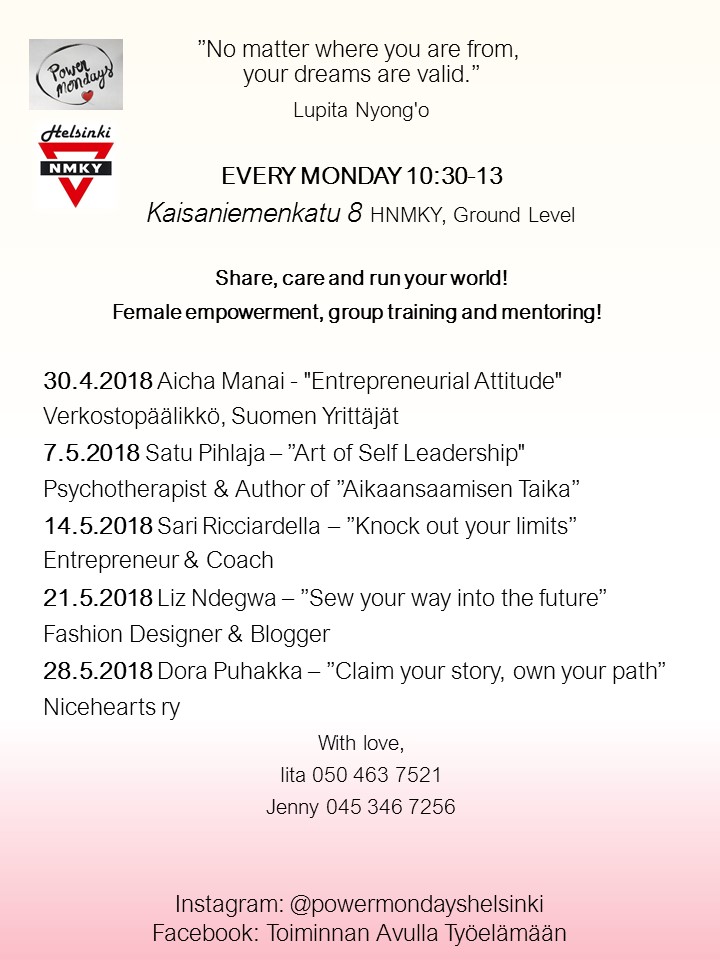 Voit myös kysyä lisätietoa: sarianne.nordberg(a)hnmky.fi