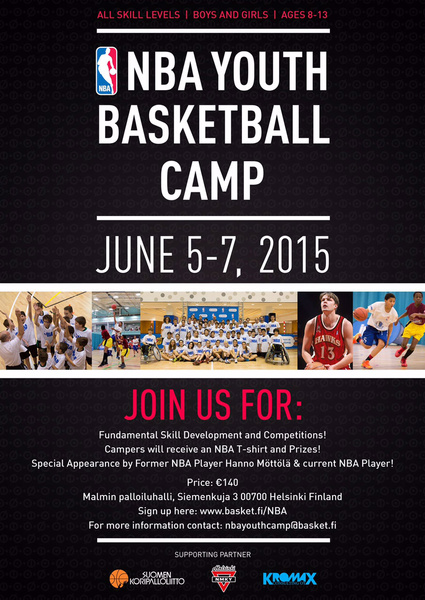 Ensimmäistä kertaa Suomessa järjestettävä NBA Youth Camp -tapahtuma 5.-7.6. Malmin palloiluhallilla Helsingissä.
