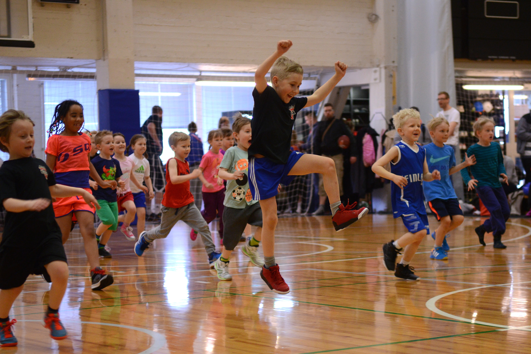 Palloiluhallin lattia tömisee. Kolmella kentällä säntäilee samaan aikaan 130 koripalloa pompottavaa 9–13-vuotiasta. Pohjois-Amerikan ammattilaisliiga NBA pitää lasten leirirupeamaa Malmilla.