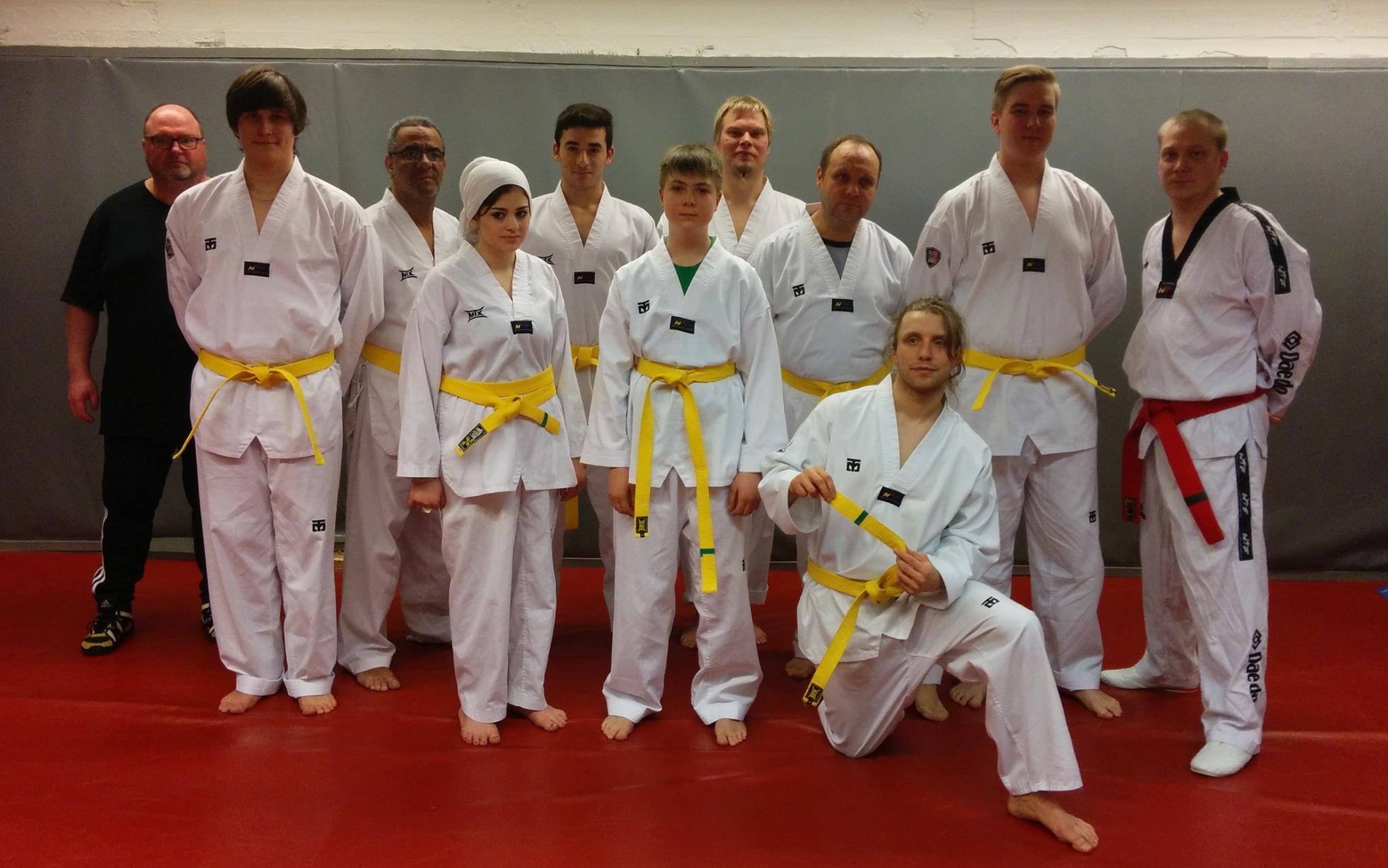 HNMKY Taekwondon uudet vyöarvot ovat: Jukka, Oleg, Tuomas, Henri, Heba, Ben, Mohammad, Janne ja Ari