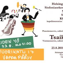 Taiteiden yönä, 23.8. klo 21: Tapio von Boehmin johtaman SINFONIAORKESTERIN NUORTEN SOLISTIEN KONSERTTI juhlasalissa Vuorikadulla. Konserttiin on vapaa pääsy.