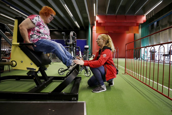Pirjo Häkkinen, 68, tutustui Liikuntaetsivä-toimintaan taloyhtiön kerhotilassa järjestetyn jumpan kautta ja on nyt Närvän yksityisasiakkaana. Häkkinen nautti jumppatunnista ja päätti kysyä, voisiko Närvä tulla jatkossa hänen avukseen kuntosalille. Häkkinen tarvitsee liikkuessaan avukseen rollaattoria, joten apu kuntosalilla operointiin oli tarpeen.
