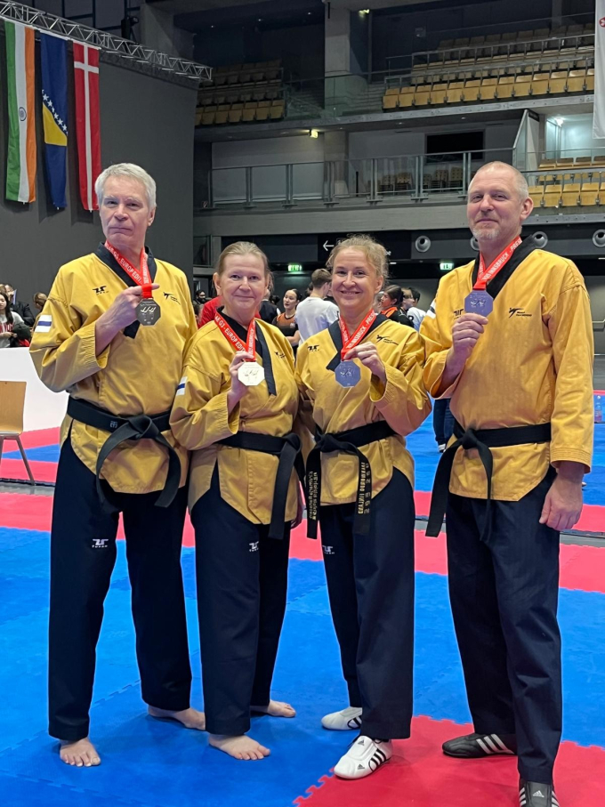 Sirpa Huuskonen sai pronssia alle 65-vuotiaissa naisissa (vs. AUT) ja hopeaa yli 60-vuotiaissa pareissa Matti Huuskosen (Wondo Espoo) kanssa (vs. GBR, vs. GER).