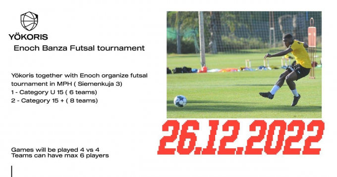 09-toiminnassa aiemmin mukana ollut Enoch Banza järjestää kaikille avoimen ja veloituksettoman futsal-turnauksen 26.12. Malmin palloiluhallilla klo 13 alkaen